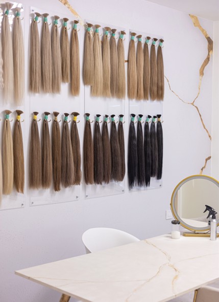 U Aesthetic Atelieru radimo isključivo sa autentičnim ruskim repovima, pažljivo biranim po boji, strukturi i kvalitetu svake dlake. Naši stručni vlasuljari ručno formiraju kapsule iz svakog repa, precizno prilagođene tipu vaše kose i obliku glave.